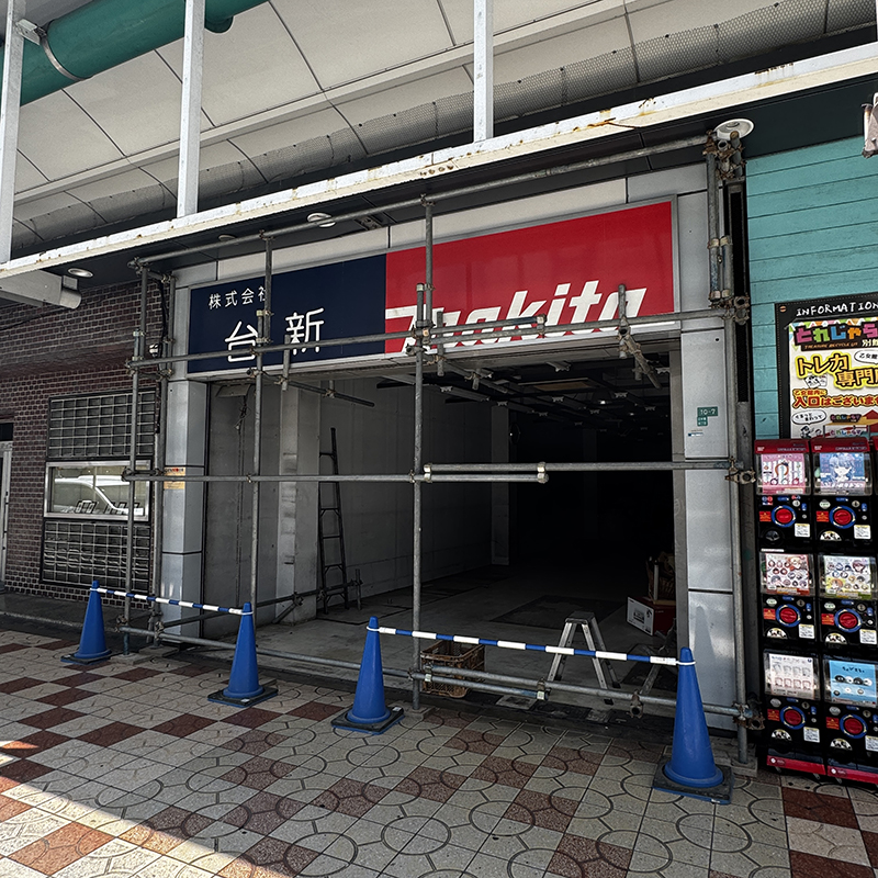 日本橋4丁目・堺筋アーケード西側で長年営業していた工具専門店「台新」(日本橋4-10-7)は、閉店していたことが判明した。現地では建物の解体工事がすでに始まっている。