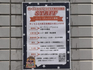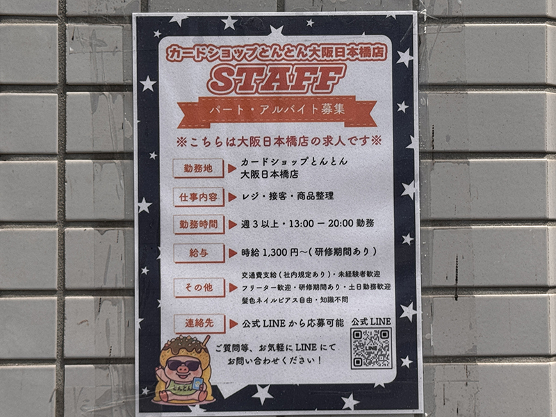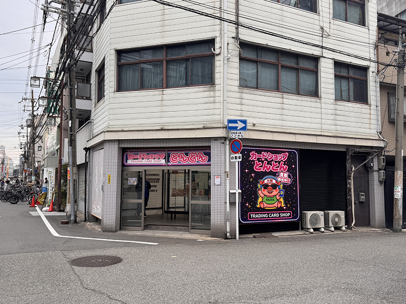 日本橋西1丁目のオタロードから一筋西側にあたる一角に、トレーディングカード専門店「カードショップとんとん 大阪日本橋店」がオープンしている。